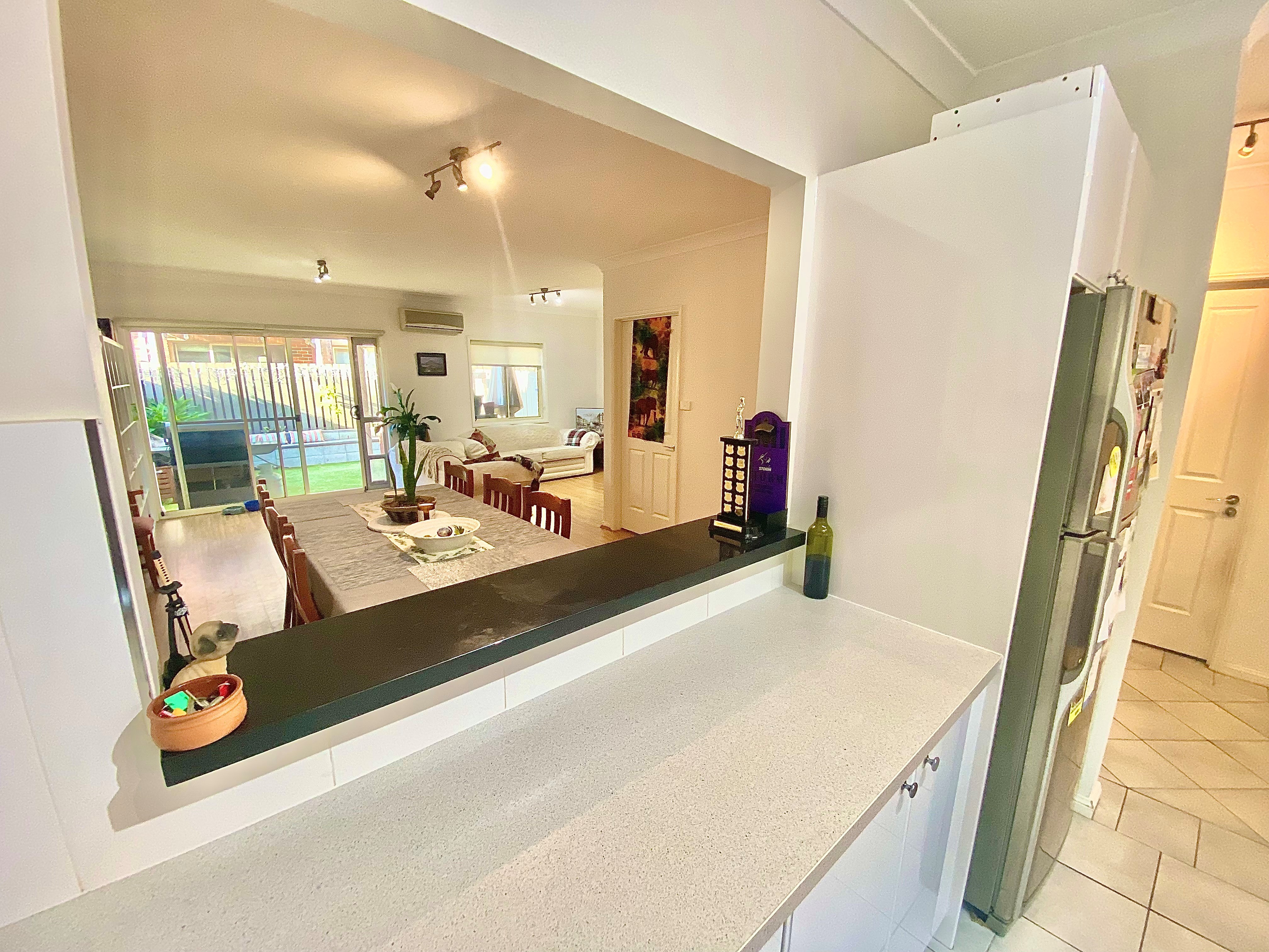 - Expansive open plan living and dining feat. breakfast bar off kitchen + split system air cond.