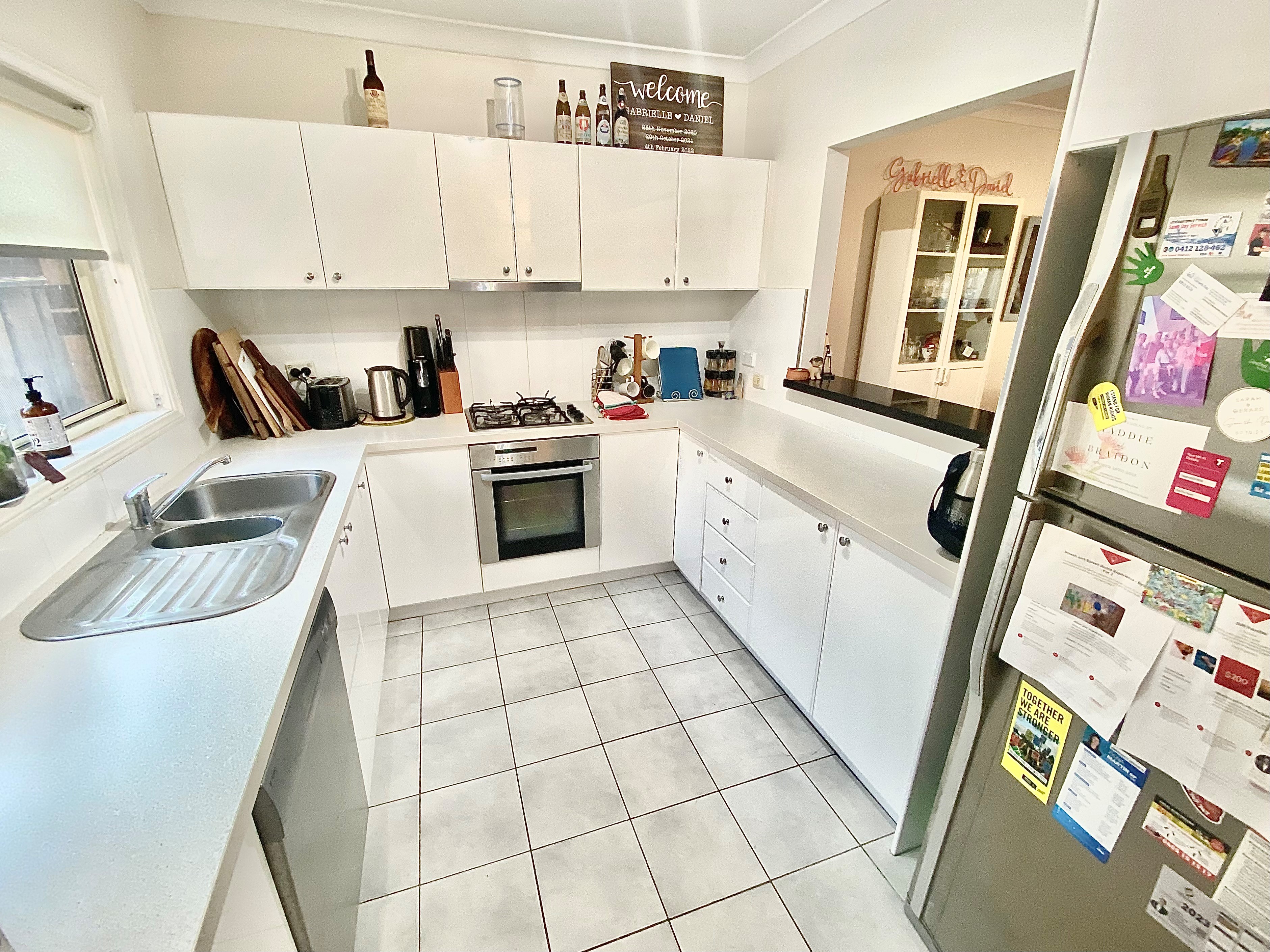 - Gas cooktop kitchen accompanied by stainless steel appliances incl. dishwasher