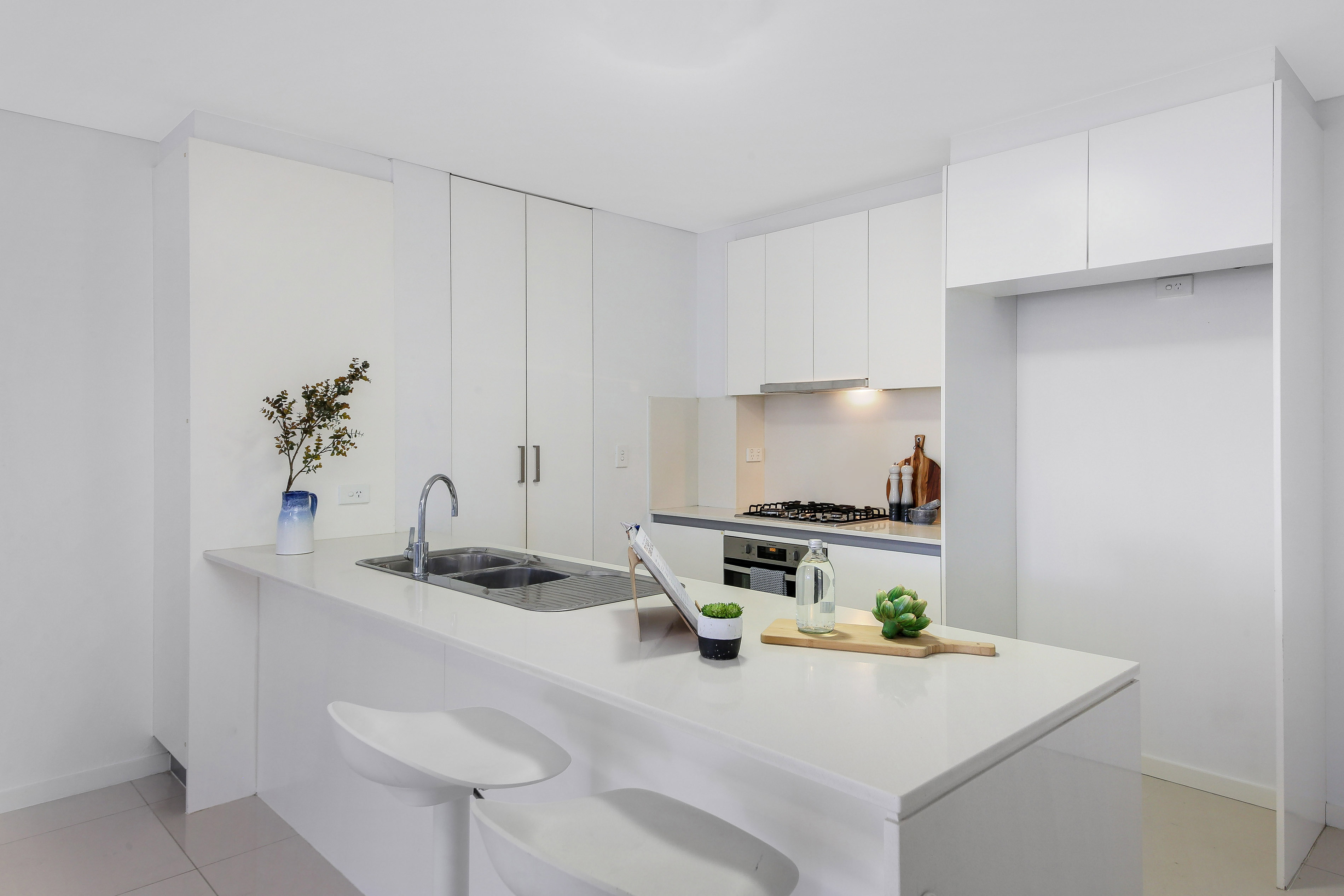- Hostess kitchen with stone benchtops