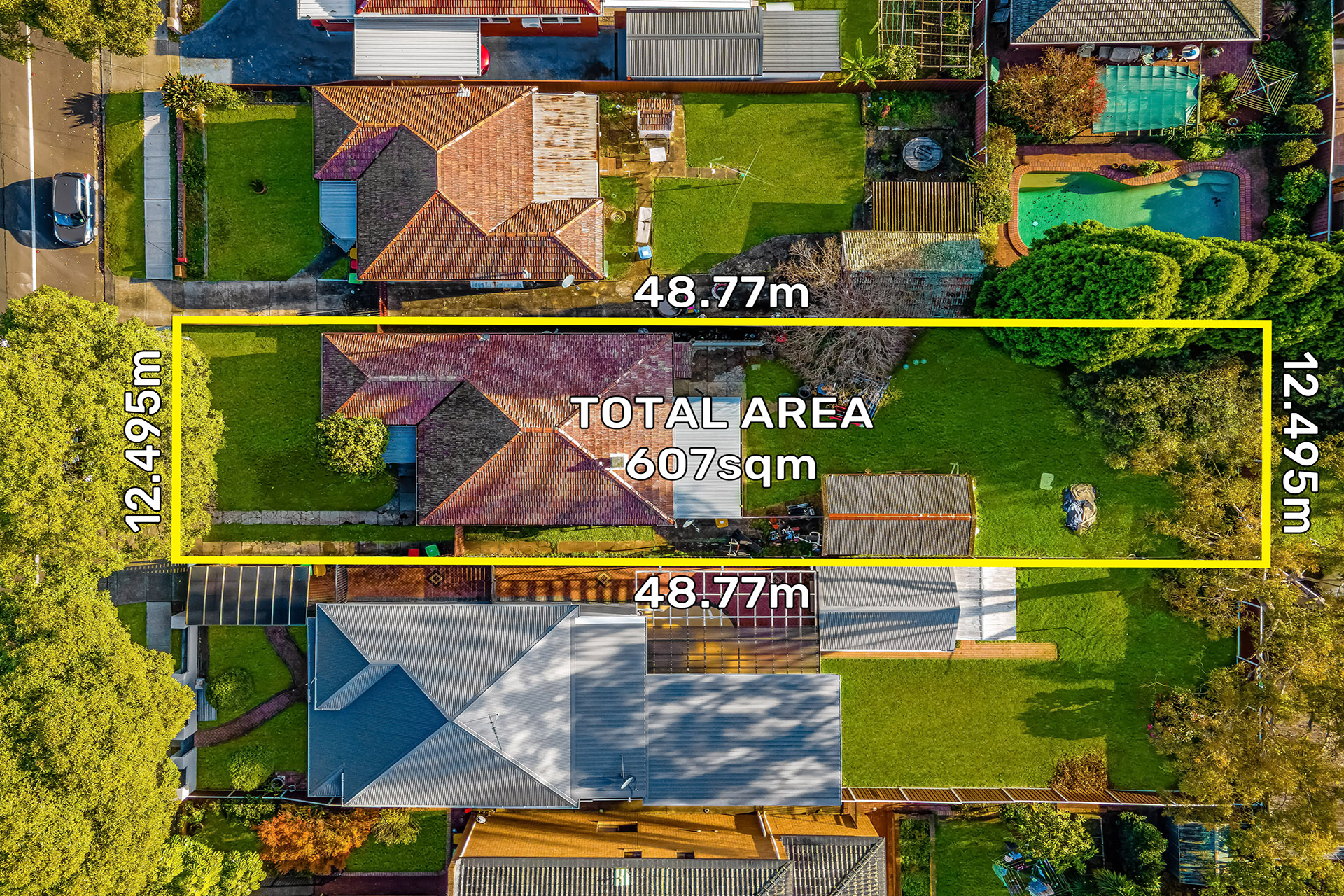 - Land area 607sqm with 12.495m width