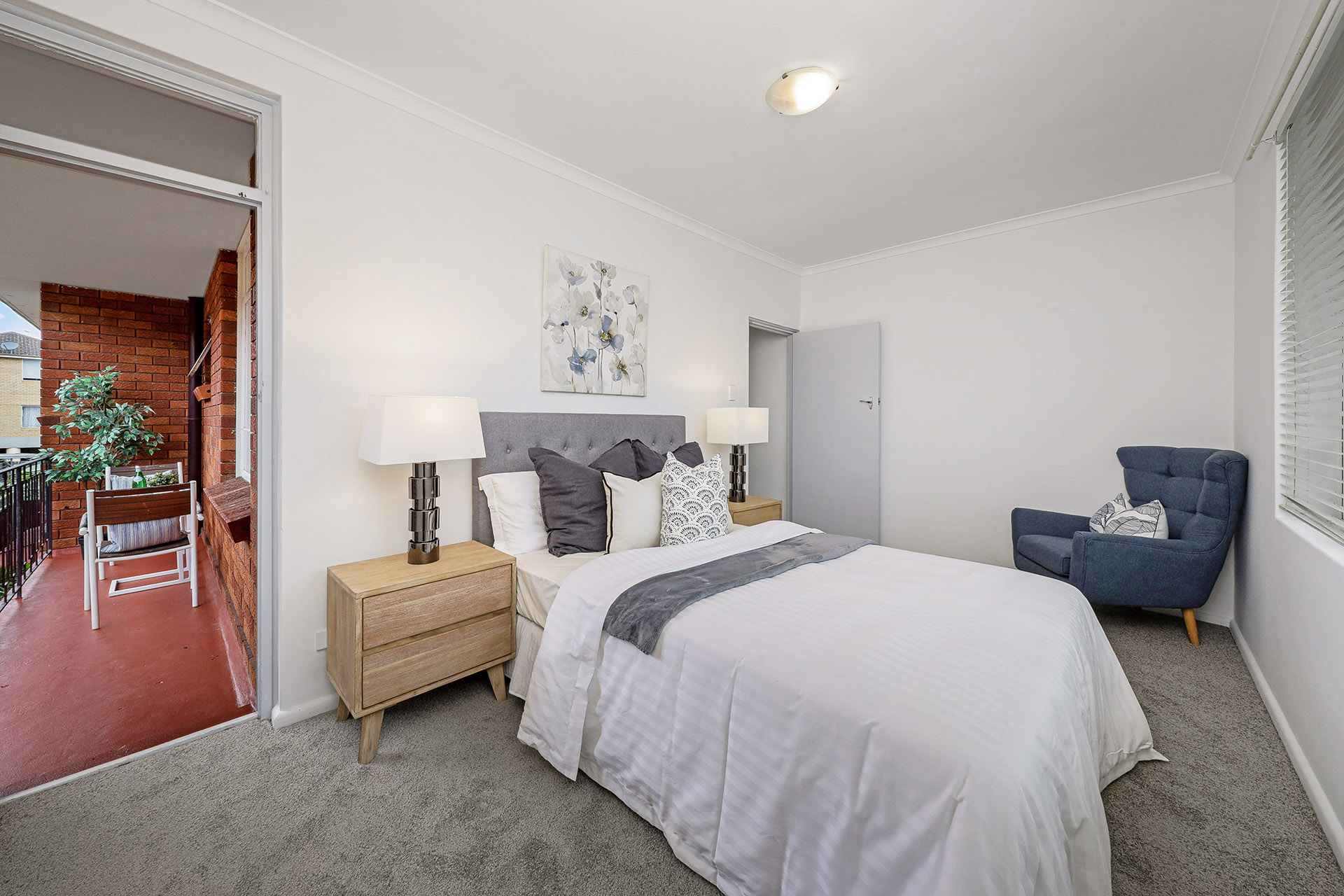 • Top floor front position with 2 bedrooms and the Primary leads to a private balcony.