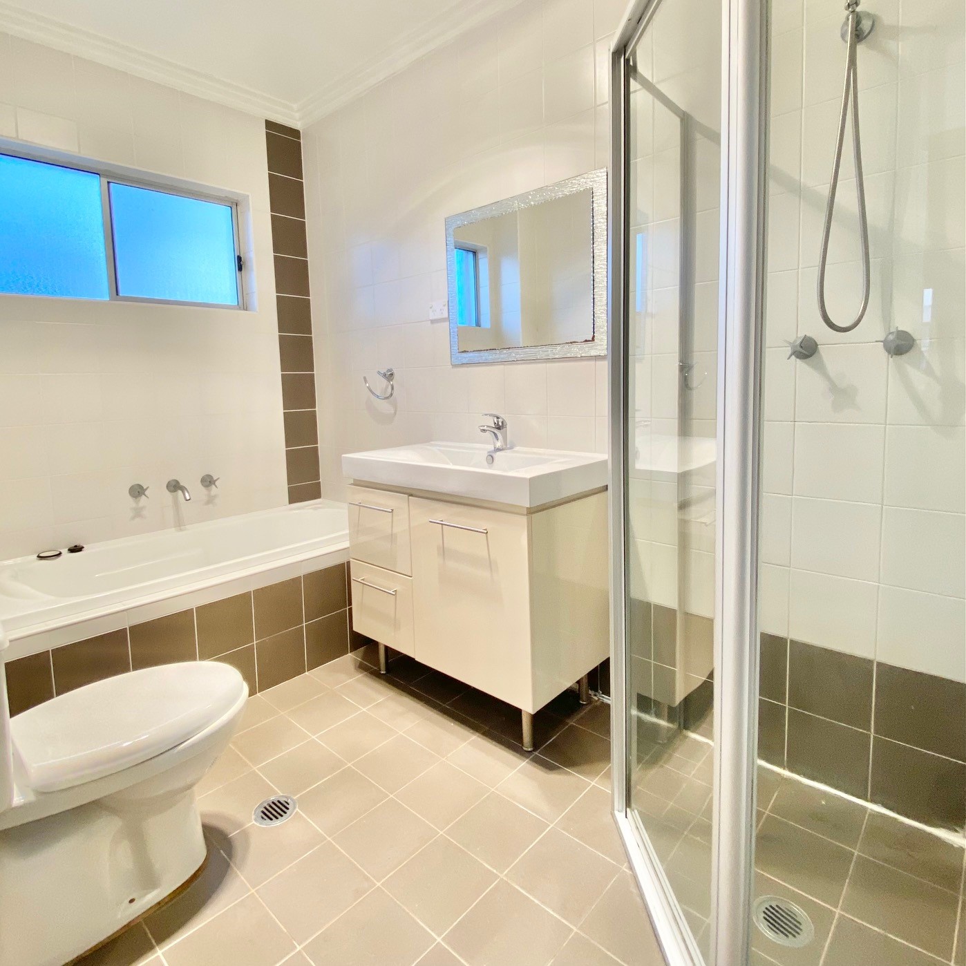 2 bright and airy bathrooms including ensuite in main bedroom