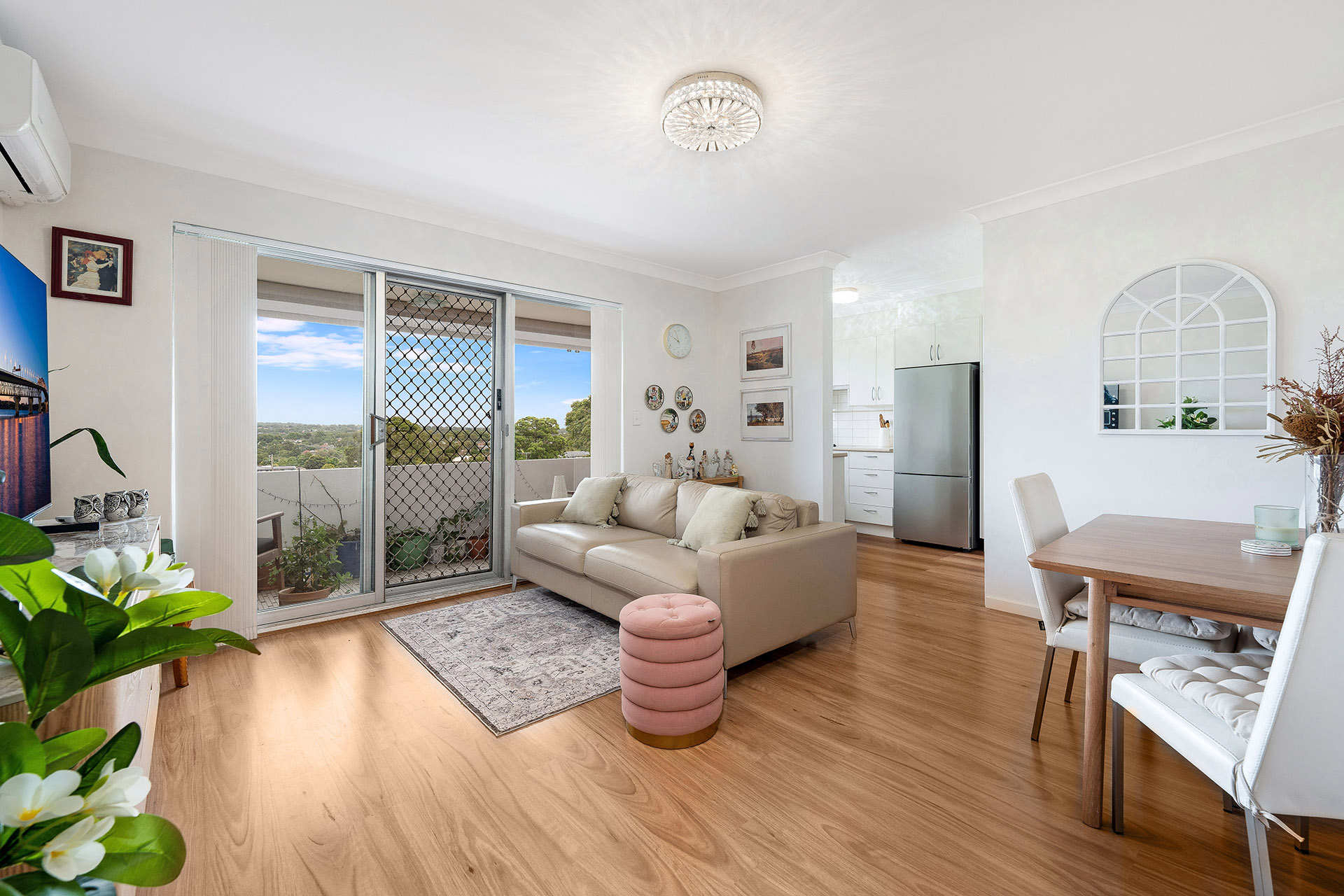 - Open plan living area with hybrid timber flooring throughout