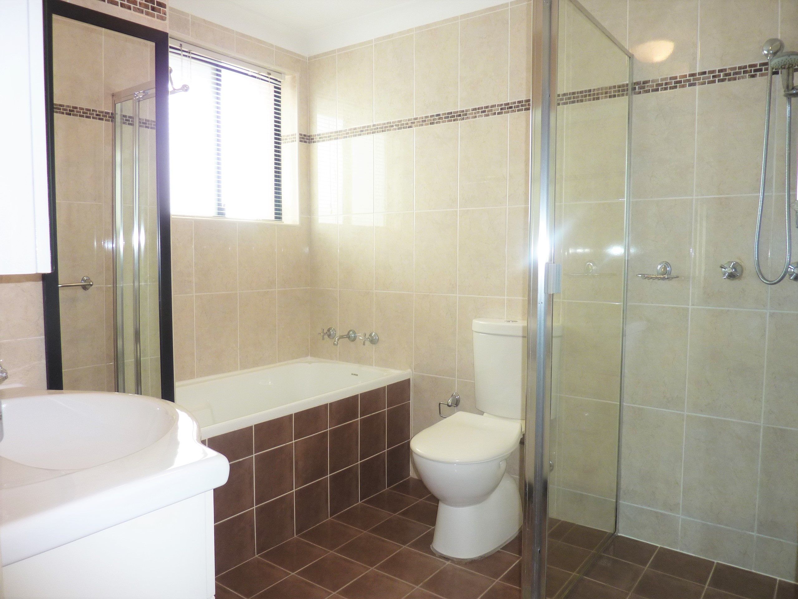 *Modern bathroom with separate bath & shower, and 2nd toilet in internal laundry.