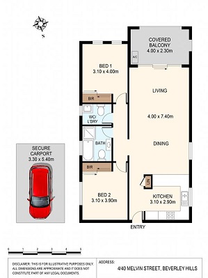 This two bedroom unit is located on the first floor of a small well maintained security block in a good location. It is conveniently positioned in a quiet street of Beverly Hills with a short walk to the train station, shops, parks and schools.