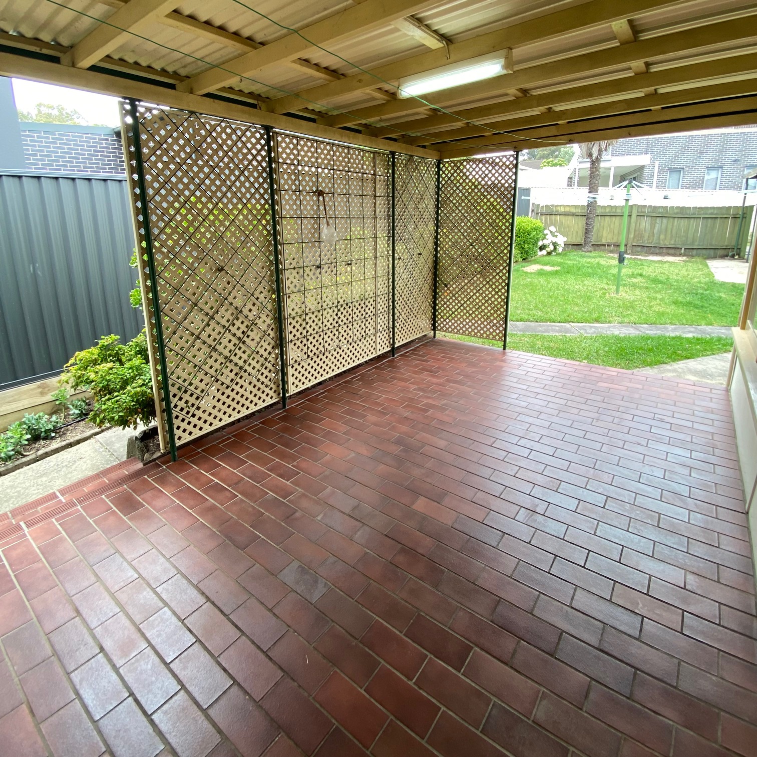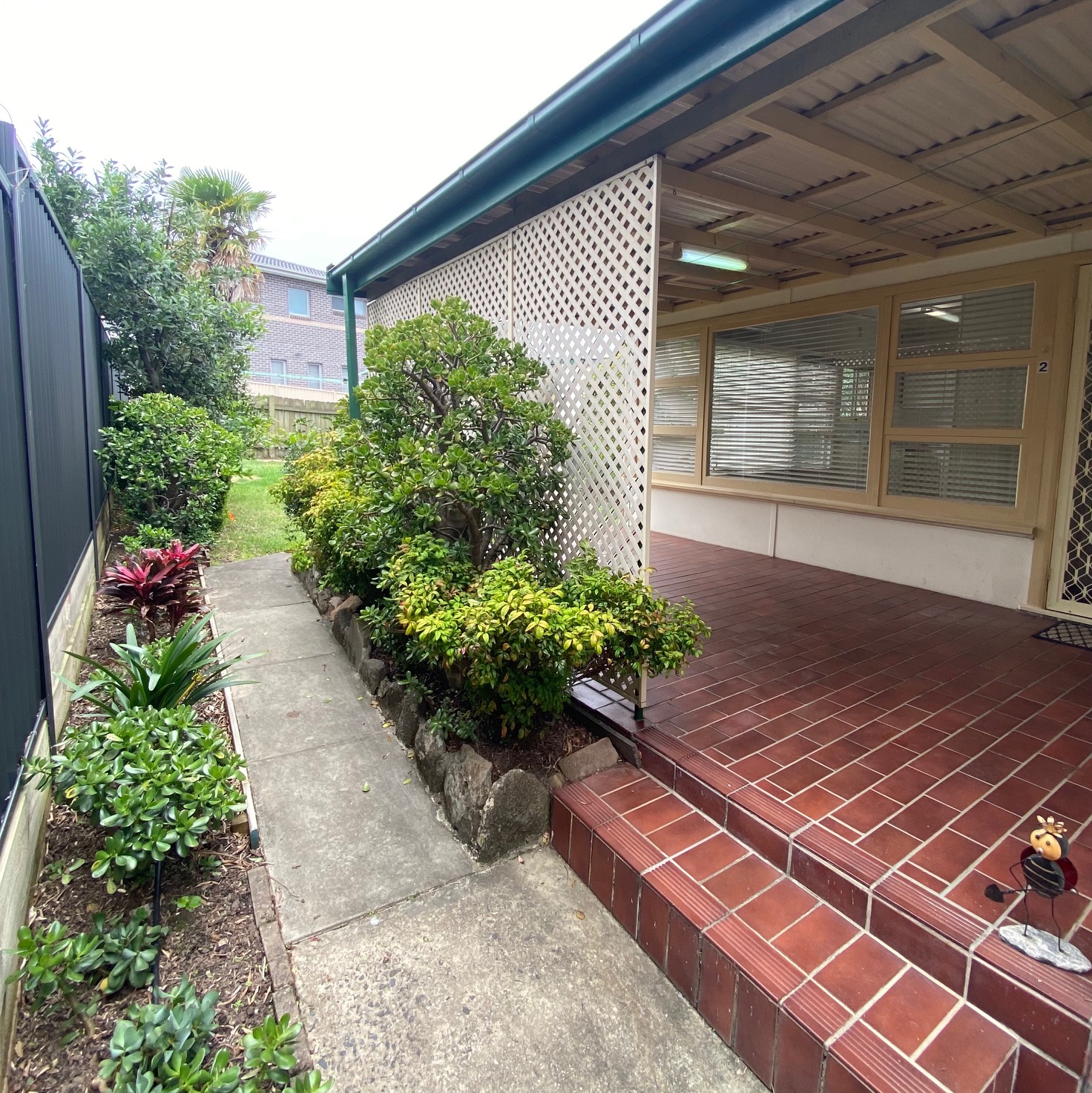 Featuring a large covered porch with an outlook of a beautifully maintained garden which is inclusive of the rent.
