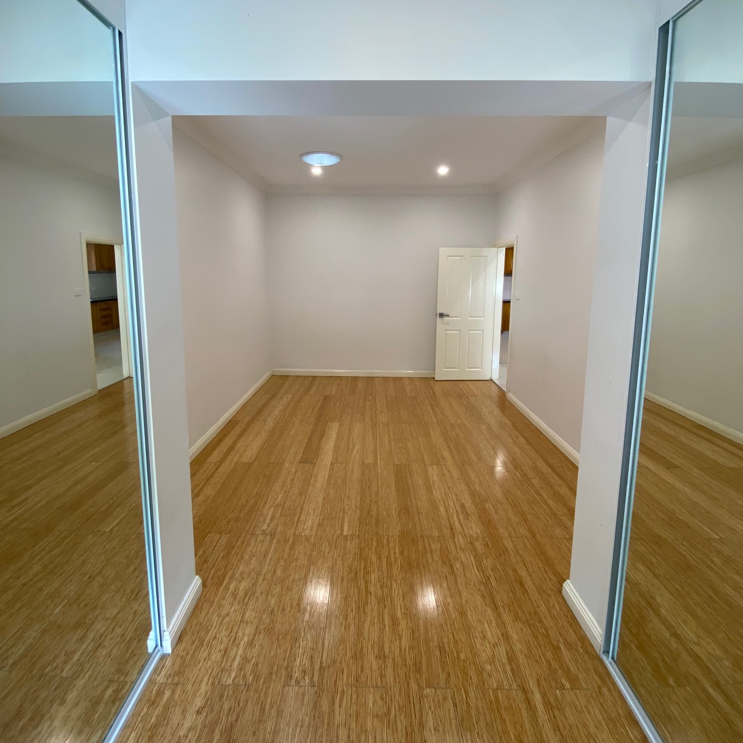 Each bedroom features timber floors, a sky light and double mirrored built-ins.