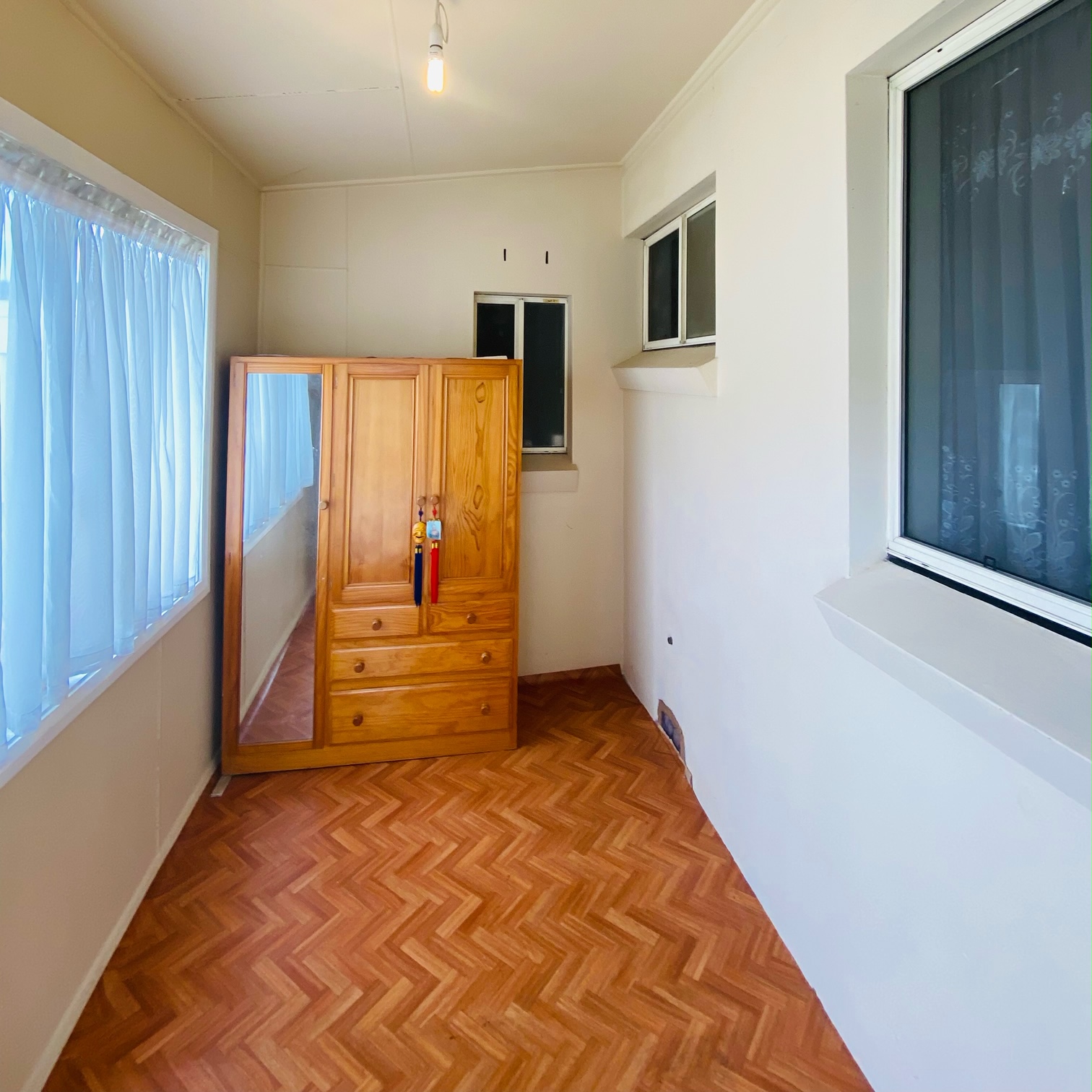 :: Oversized storage/sunroom off back verandah